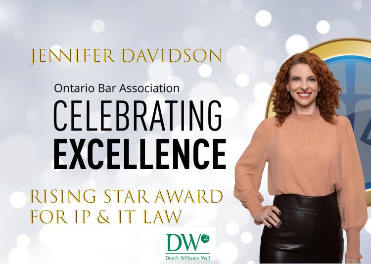 Deeth Williams Wall LLP is proud to announce that Jennifer R. Davidson will receive the Rising Star Award for the Ontario Bar Association Information Technology and Intellectual Property Law Section. The Rising Star Award will be presented at a ceremony on April 28, 2026, at the OBA Conference Centre in Toronto.